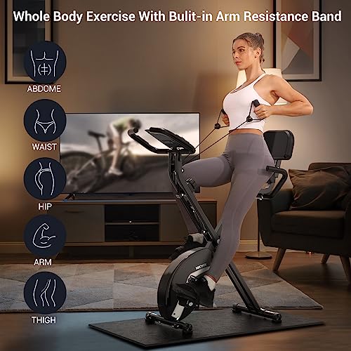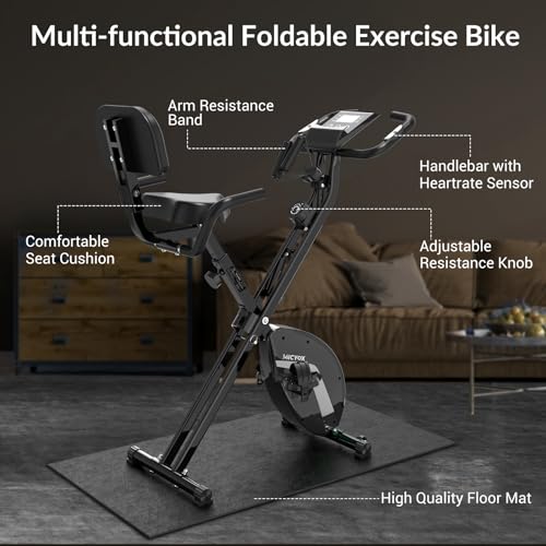 Micyox MX-600 Cyclette Magnetica con Schienale Bicicletta da Ciclismo da Interno Pieghevole con Display LCD e Sensore di Frequenza Cardiaca Bici da Allenamento a Casa con Bande di Resistenza