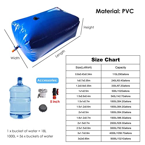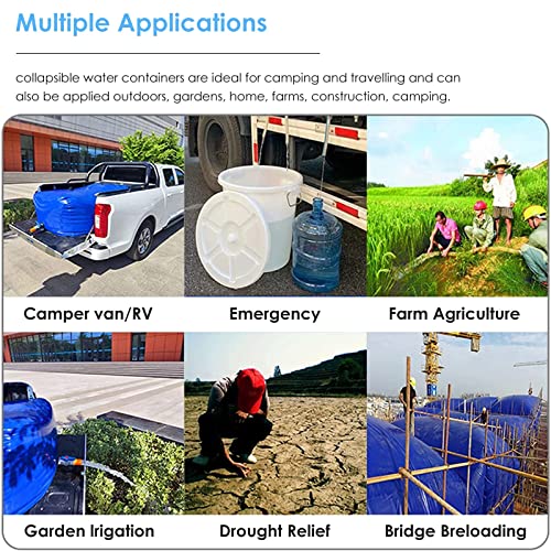【Contenitore dell’acqua multifunzionale】: Il contenitore dell’acqua pieghevole di grande capacità ha una forte adattabilità ed è adatto per l’irrigazione agricola, l’ingegneria dei ponti, i serbatoi di trasporto, i cantieri, l’uso dell’acqua rurale, l’uso dell’acqua nelle fabbriche, ecc.