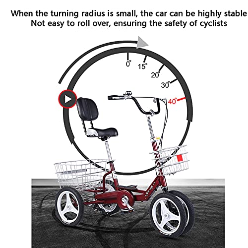 QWAXTRIW Triciclo per Bicicletta da Crociera a Tre Ruote da 12/14 Pollici per Adulti con Telaio in Acciaio ad Alto Tenore di Carbonio per attività Ricreative Shopping Picnic Esercizi in più