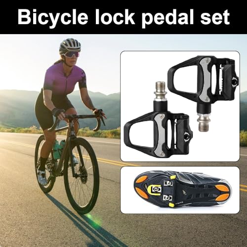 SKIKHN Pedali Autobloccanti per Bici,Pedali per Bicicletta,Pedali Bici da Corsa,Pedali Autobloccanti con Tacchetti Kit Combinato Nottolino,9/16″ Pedali Universali Della Piattaforma Della Bicicletta