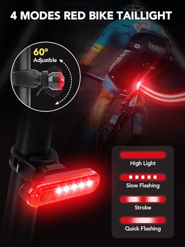 【𝗡𝗲 𝗙𝗮𝗶𝗿𝗲 𝗧𝗮𝗶𝗹𝗴𝗮𝘁𝗲, 𝗦é𝗰𝘂𝗿𝗶𝘁é 𝗔𝘃𝗮𝗻𝘁 𝗧𝗼𝘂𝘁!】Questa luce posteriore rossa è il pezzo forte per la sicurezza in bicicletta. Ha 4 Modalità di Luce Eccezionali (fissa, stroboscopica, doppio flash, strobo caotico) che emettono un fascio grandangolare che copre un’incredibile angolazione di 270°. È il partner perfetto per i tuoi fari anteriori. Di giorno o di notte, questa figata assicura di essere visibile da ogni dannato angolo.