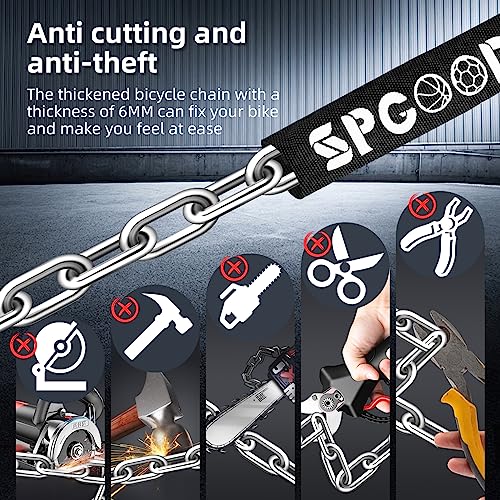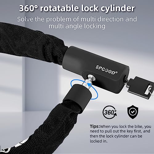 SPGOOD Lucchetto per bicicletta con 3 chiavi, 90 cm in catena in acciaio da 6 mm, con copertura impermeabile, antifurto, ad alta sicurezza per bicicletta, e-bike, MTB, moto