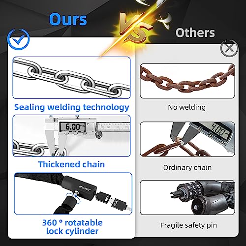 CARATTERISTICHE: 90 cm di lunghezza e 6 mm di spessore: la catena per bicicletta è lunga 90 cm e la lunghezza totale è di 110 cm (compresa la testa del lucchetto). È abbastanza lungo per bloccare più biciclette. La catena in acciaio speciale temprato ha uno spessore di 6 mm, che può prevenire forbici e furti.
