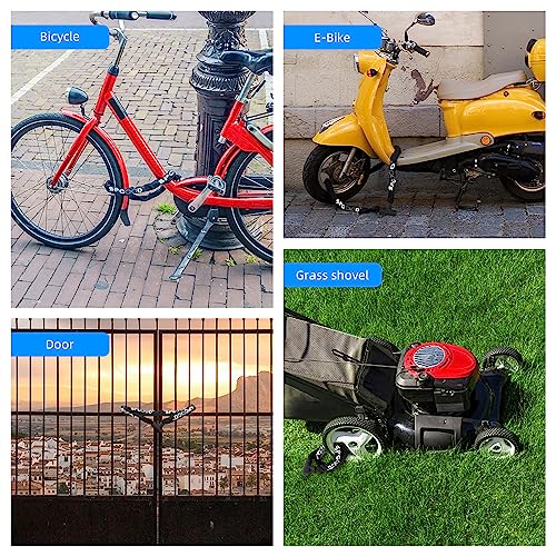 Sicurezza e uso ampio: il lucchetto per bicicletta resistente all’usura e al taglio migliora la sicurezza ed è adatto per biciclette, biciclette elettriche, moto, passeggini, pale per erba, supporti per barbecue, porte di recinzioni e altri oggetti che devono essere protetti da lucchetti per catena della bicicletta.