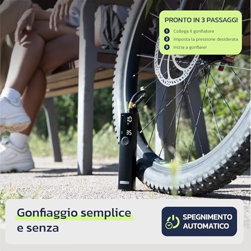 CARATTERISTICHE: POTENTE E VELOCE: Ottieni un gonfiaggio rapido con una pressione massima di 120 PSI. L’inflatore elettrico BP188 è perfetto per biciclette elettriche, biciclette, motociclette, scooter, palloni sportivi e persino pneumatici per auto, risparmiando tempo in ogni viaggio.