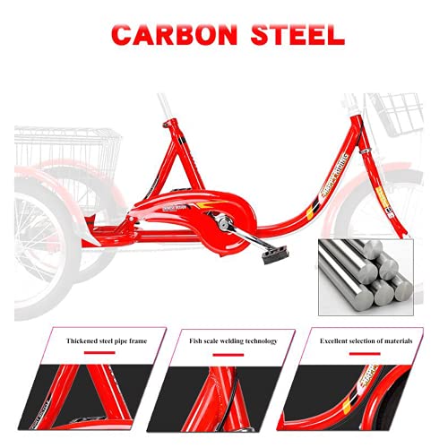 WRHOPR Bici a Tre Ruote, Triciclo per Adulti Bicicletta per Adulti Bicicletta a Pedali con Cestino Di Carico per Attività Ricreative Shopping Esercizi Biciclette da Uomo e da Donna Ciclismo Pedalata