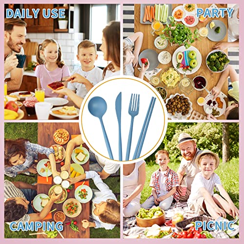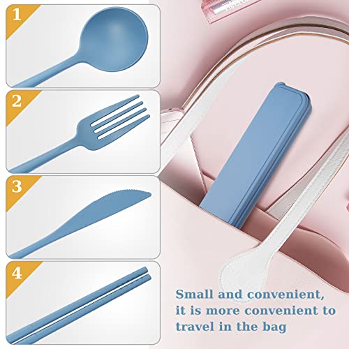 4 set di stoviglie con scatola, coltello, Bacchette,cucchiaio e forchetta, stoviglie in plastica portatile e set di attrezzi da campeggio, adatto per viaggi, picnic, campeggio o uso quotidian