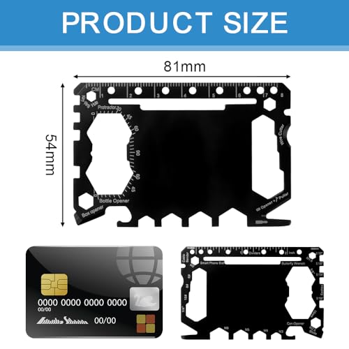 ADERTOS 2 Multiuso Carta di Credito, Carta Attrezzi Multifunzione 46 in 1, Carte Multiuso Portatili in Acciaio Inossidabile, Multiuso Carta di Sopravvivenza per il Campeggio (Nero/Argento)