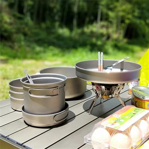 Aioneer Set di Pentole E Padelle in Titanio Ultraleggero da Campeggio, Sei Pezzi, Grigio Chiaro, Uno