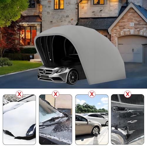 [Ampio Spazio Riparato] – Misura L5,9 x P2,7 x A2,45 m (19.3 x 8,8 x 8 ft), offrendo ampio spazio per auto, SUV o rimessaggio esterno con elevata capacità di carico.