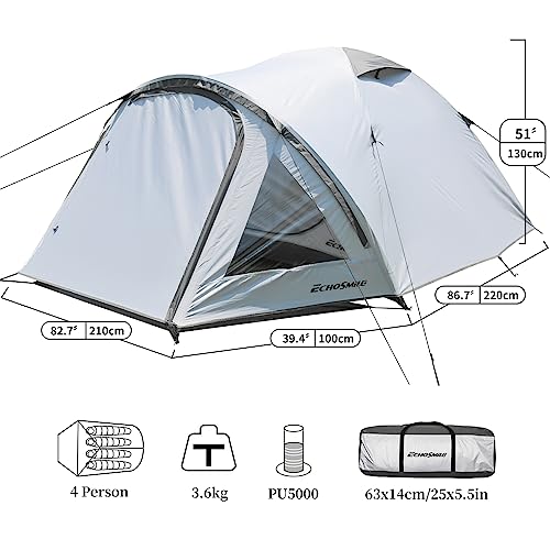 EchoSmile Tenda da Campeggio per 4 Persone,Impermeabile Ultraleggera Tenda,Facile da Installare,3-4 Stagioni Tenda Campeggio per Escursioni All’aperto