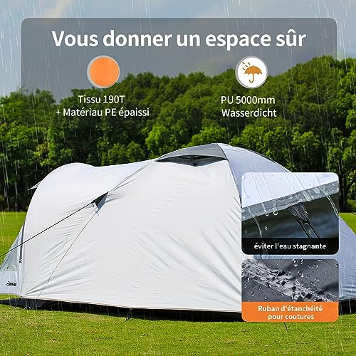 L’EchoSmile Tenda da 4 persone offre una soluzione ottima per quelle scapole all’aperto desiderate in piena armonia con l’ambiente circostante. La sua leggera impermeabilità lo rende un ideale compagno di avventura in qualsiasi stagione, dal freddo inverno alle estati calide, rendendolo quindi una scelta eccellente per le escursioni tra la natura.