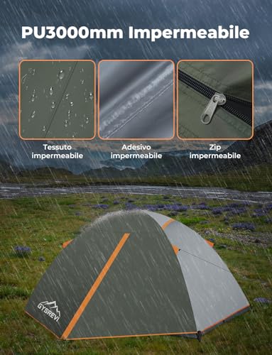 Gysrevi Tenda Campeggio per 2-3 Persone, Tenda da Campeggio Doppia Porta Impermeabile & Antivento Tenda Interna ed Esterna 2 in 1 Adatto per il Campeggio, Escursioni, Viaggi di Coppia, Escursioni