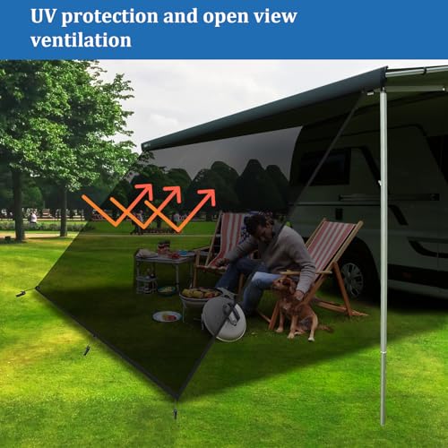 CARATTERISTICHE: 【BLOCCANTE LA LUCE SOLARE】Il nostro tendalino per camper blocca l’86% dei raggi UV e consente una brezza che abbassa la temperatura interna. Ora puoi goderti il tempo all’aria aperta in un luogo accogliente e ombreggiato senza preoccuparti dei dannosi raggi UV.