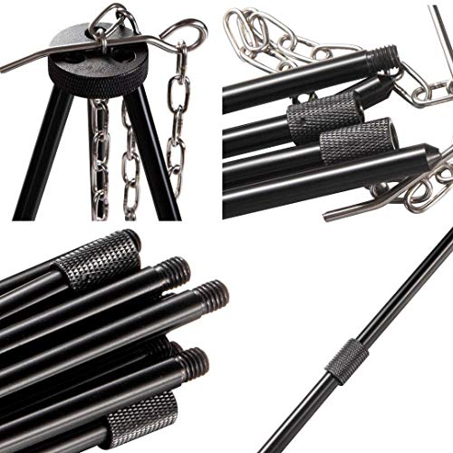 JasCherry Treppiede da Cucina per Esterni, Treppiede per Barbecue, Griglie da Campeggio con Catena e Ganci, per Cucinare, Asciugare Vestiti, Arrosti in Pentola (senza pentola appesa), Black