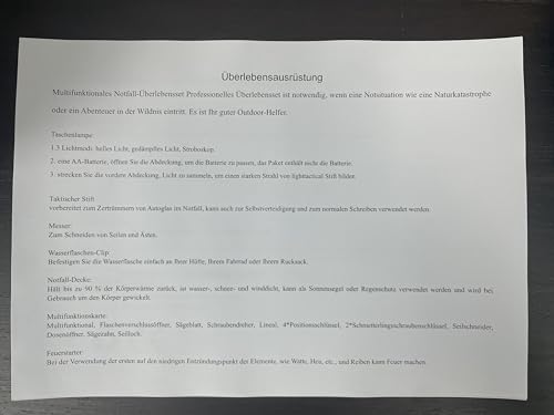 Il Kit Sopravvivenza 13 in 1 Campeggio Accessori di Emergenza è un’ottima scelta per chi ama la natura e la vita all’aperto. Ideale per campeggiare, pescare o cacciare, questo set completo offre un’ampia gamma di strumenti di sopravvivenza professionali.