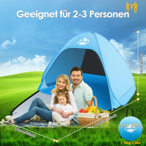 MAXDONE Tenda da spiaggia pop up tenda da spiaggia per 2-3 persone, automatica, protezione UV50+, portatile, extra leggera, per famiglie, spiaggia, campeggio, giardino, con borsa per il trasporto