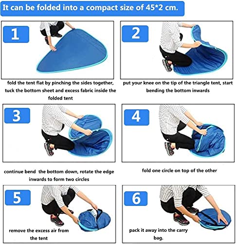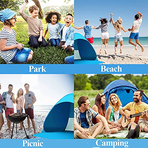 CARATTERISTICHE: ☀️【Specifiche】 ingombro 165 x 150 cm; Altezza centrale 110 cm; adatto per 2 o 3 persone; peso di 0,95 kg. Dimensioni piegate: 45 cm di diametro, facile da trasportare con la borsa per il trasporto. La tenda viene fornita con 6 picchetti e tasche di sabbia per una tenda stabile dal vento.