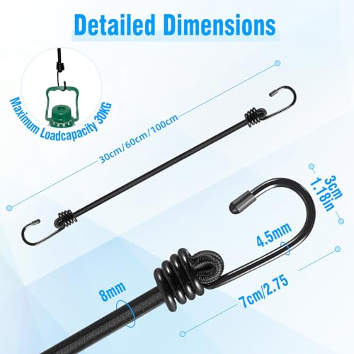 【Resistenza allo strappo】:-Le corde elastiche con gancio sono incredibilmente elastiche, resistenti agli strappi, hanno una forza di trazione massima di 30 kg e possono essere estese fino al doppio della lunghezza del prodotto.