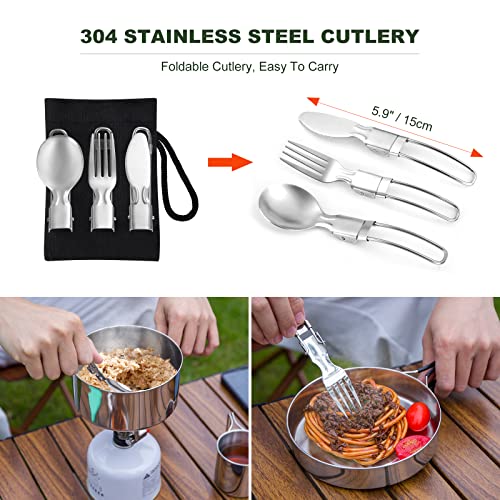 Odoland Pentola da Campeggio in Acciaio Inox, Pentola Pieghevole e Impilabile per Outdoor, Set di Gavetta Scout per Campeggio Escursioni Picnic