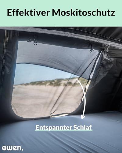 Tende da tetto OWEN – adatte per auto, monovolume, SUV e furgoni compatti. Il sistema di supporto per il tipo di veicolo (originale o accessorio) costituisce la base del montaggio (e non è compreso nella fornitura)