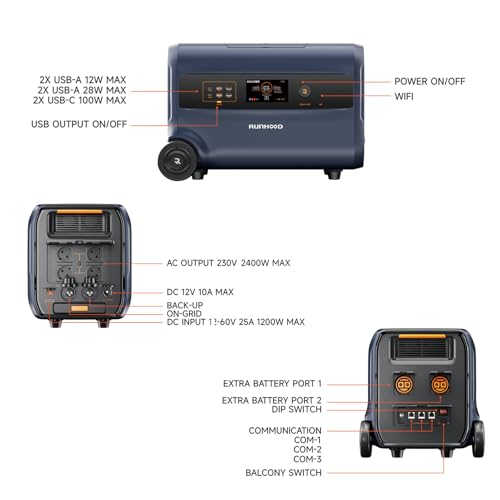 RUNHOOD F2400 Power Station Portatile 2400Wh,3 in 1 Solare Inverter/PV Centrali Elettriche/Alimentazione Mobile,WLAN Stazione di Alimentazione Portatile da 2.4kWh,APP Collegabili – AKUFX