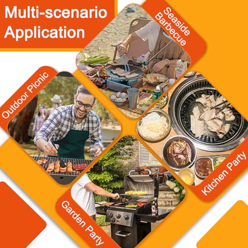 La pinza solida e resistente alle alte temperature, la spatola e la forchetta lavorano insieme per grigliare cibi deliziosi. Durante la grigliata, non devi preoccuparti che lo strumento si pieghi, si rompa o arrugginisca. Puoi grigliare, campeggiare o cucinare facilmente.