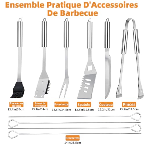 Set professionale di utensili da barbecue in acciaio inox, pratici accessori per barbecue, con borsa per il trasporto, per campeggio, picnic e barbecue all’aperto (11 pezzi)