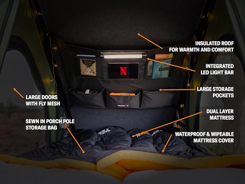 COMFORT E CARATTERISTICHE MIGLIORATE: Goditi una serie di miglioramenti con il Cargo 2.0, tra cui un materasso più confortevole, un lucernario per osservare le stelle e una luce a LED integrata per una maggiore comodità durante i soggiorni notturni.