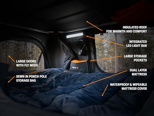 UPGRADE E CARATTERISTICHE PREMIUM: Goditi il massimo del campeggio di lusso con le caratteristiche premium della Classic 2.0. Dal materasso più confortevole per notti riposanti fino alla barra luminosa a LED integrata per una maggiore comodità, ogni dettaglio è progettato per migliorare la tua esperienza di campeggio.