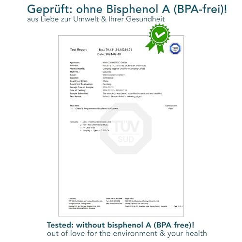 ✅ Assolutamente facile da pulire: il materiale è resistente all’abrasione e agli strappi. Grazie alle fibre a maglie strette e resistenti, il tappeto per tenda non è solo robusto, ma è anche facile da pulire. Il telo è inoltre traspirante e permeabile all’acqua, quindi si asciuga più velocemente dopo il maltempo.