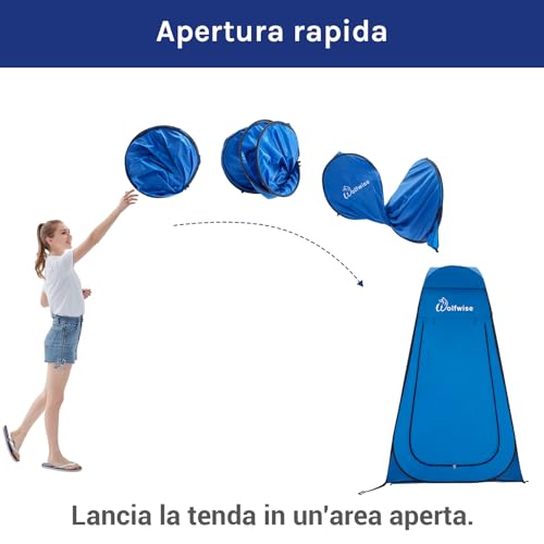 WolfWise Tenda da doccia per la privacy, portatile, da campeggio, spiaggia, WC, tenda pop up, spogliatoio, zaino per esterni, riparo blu